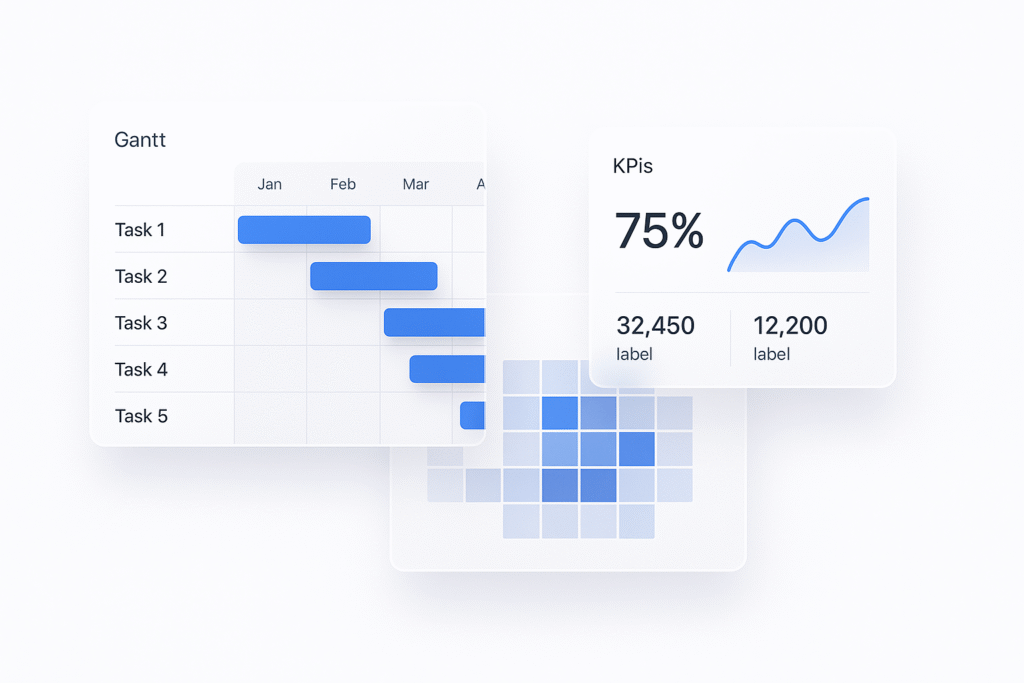 Planifica, asigna y controla hitos con vistas Gantt y Kanban.